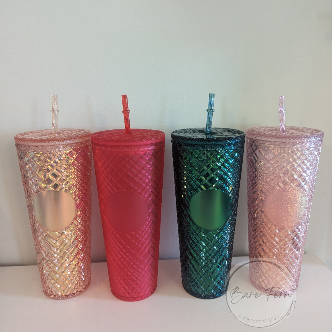16 oz frosted glass tumbler with bamboo push on lid and clear straw